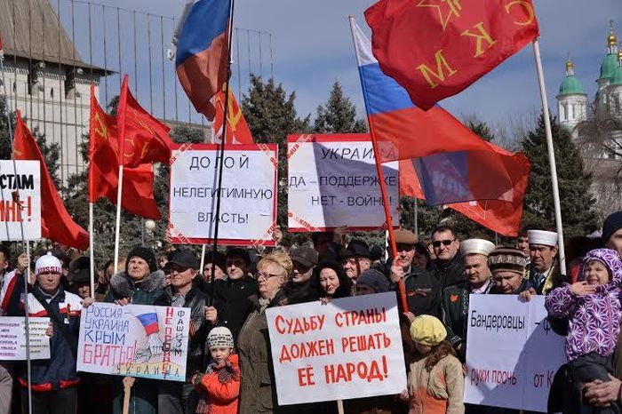 Митинг прошел на главной площади Астрахани – площади Ленина 9 марта 2014 года. На митинге собралось около семи тысяч человек. Астраханские профсоюзы, как одна из самых многочисленных общественных организаций региона, вышли на митинг, чтобы высказать слова поддержки украинскому народу. Участники акции развернули плакаты с надписями: «Севастополь – Крым – Россия с вами!», «Бандеровцы - руки прочь от Украины», «Народ Украины! Астрахань с Вами!».